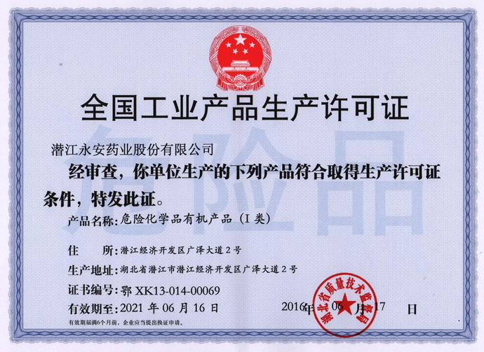 潛江永安藥業股份有限公司成立于2001年,坐落于江漢平原腹地潛江市國家高新技術產業開發區,占地500余畝,注冊資金貳億玖仟肆佰陸拾捌萬貳仟伍佰元整,是一家擁有自主知識產權的國家高新技術企業。公司股票于2010年3 月5日在深圳證券交易所掛牌上市(股票代碼為002365)。公司具有雄厚的技術開發能力,是湖北省創新型企業和湖北省知識產權建設示范企業。公司研發平臺分別被認定為省級企業技術中心和湖北省功能性食品添加劑工程技術研究中心。 經過多年的發展,公司形成了以食品及藥品添加劑?;?/p>
